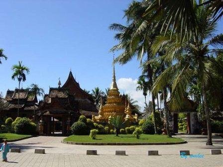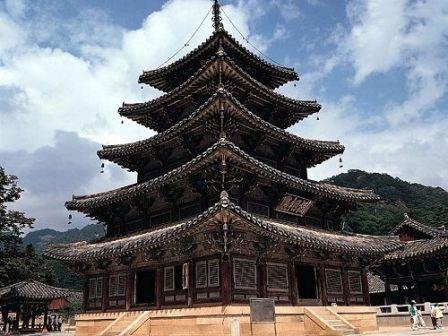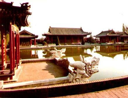 A templomban a harangpagoda, a Tianwang pavilon, a Daxiong Baodian pavilon, a Gwan-Yin pagoda, és az úgynevezett szabadon engedő meder (a buddhista világban tiltják az élőlények gyilkosságát, ezért ha megfogtak egy élőlényt egy adott helyen el kell engedni, hogy tovább élhessen) és többi régi építmény épült. A tágas udvarban kellemesen rendeződnek el a különböző építmények. A Tianwang pavilonban négy buddhista figurából álló szoborcsoport található, amelyet a hinduizmus alapján, kínai szájhagyomány alapján faragtak. A figuracsoport igen kiváló nagy művészeti jelentőséggel bír.