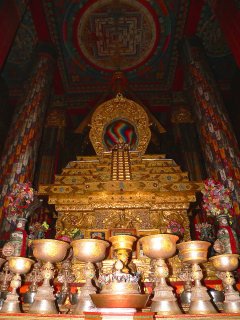 A sztupában éjjel-nappal megállás nélkül forog a mani-korló (imamalom). Ebben egy tonna papírtekercs van, amelyen Buddha tanának lényegét tartalmazó szent írás áll. Amikor Buddha tanított – úgy mondják- megforgatta a Tan kerekét. amely ma is forog.